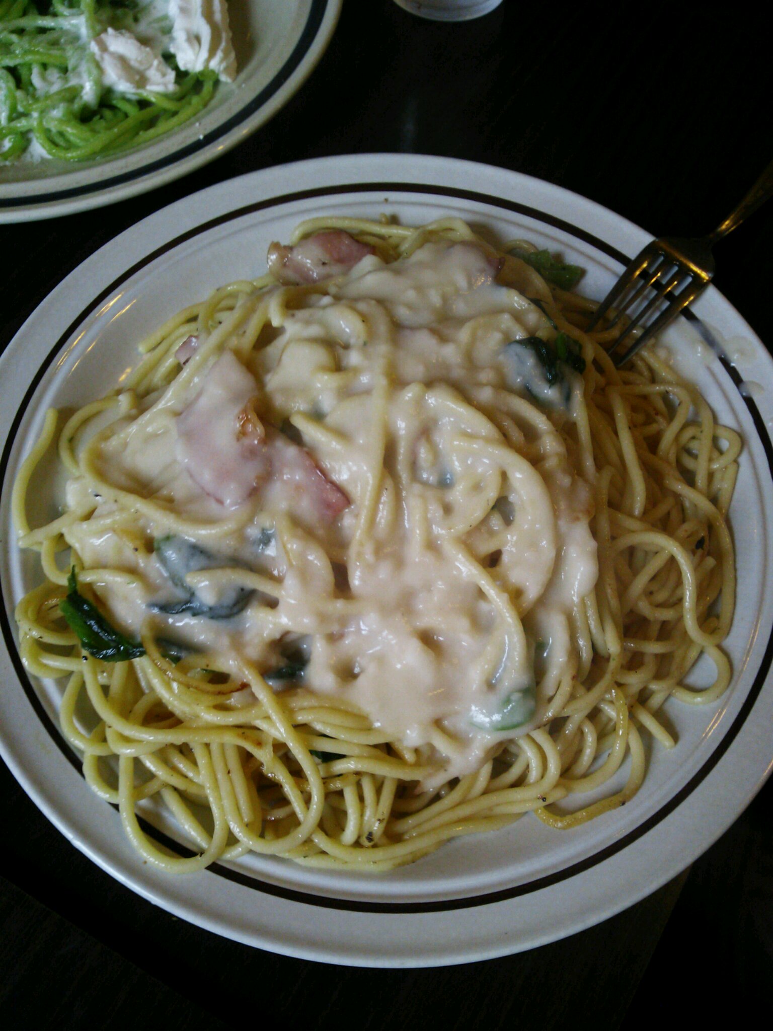 お次は、こばんさん注文のベーコンクリームパスタ。