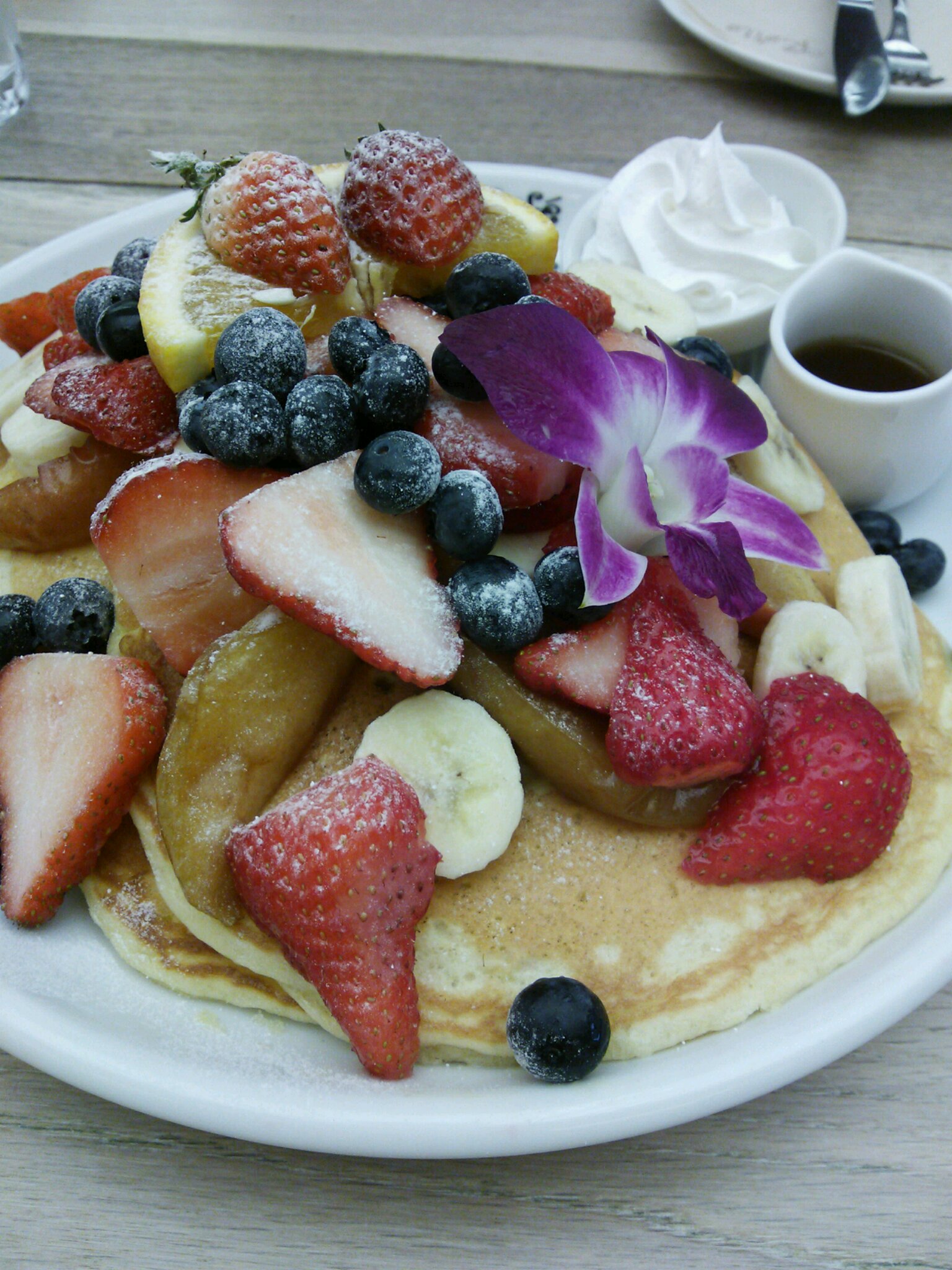 写真のはトッピング全部のせのパンケーキです。