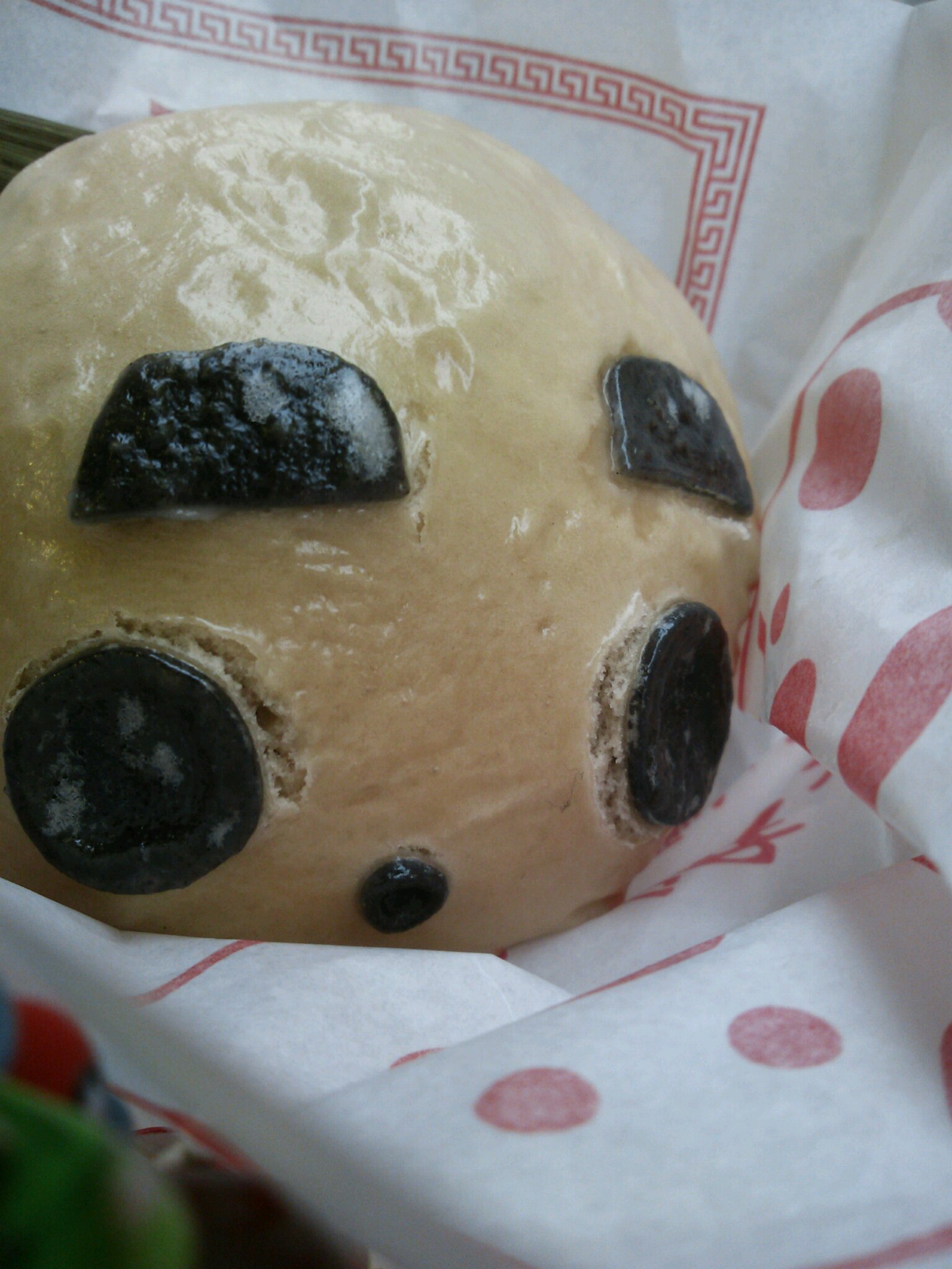 中華街で食べたパンダまん。中身は肉です。他にも、チョコとかが入っているのもありました。
