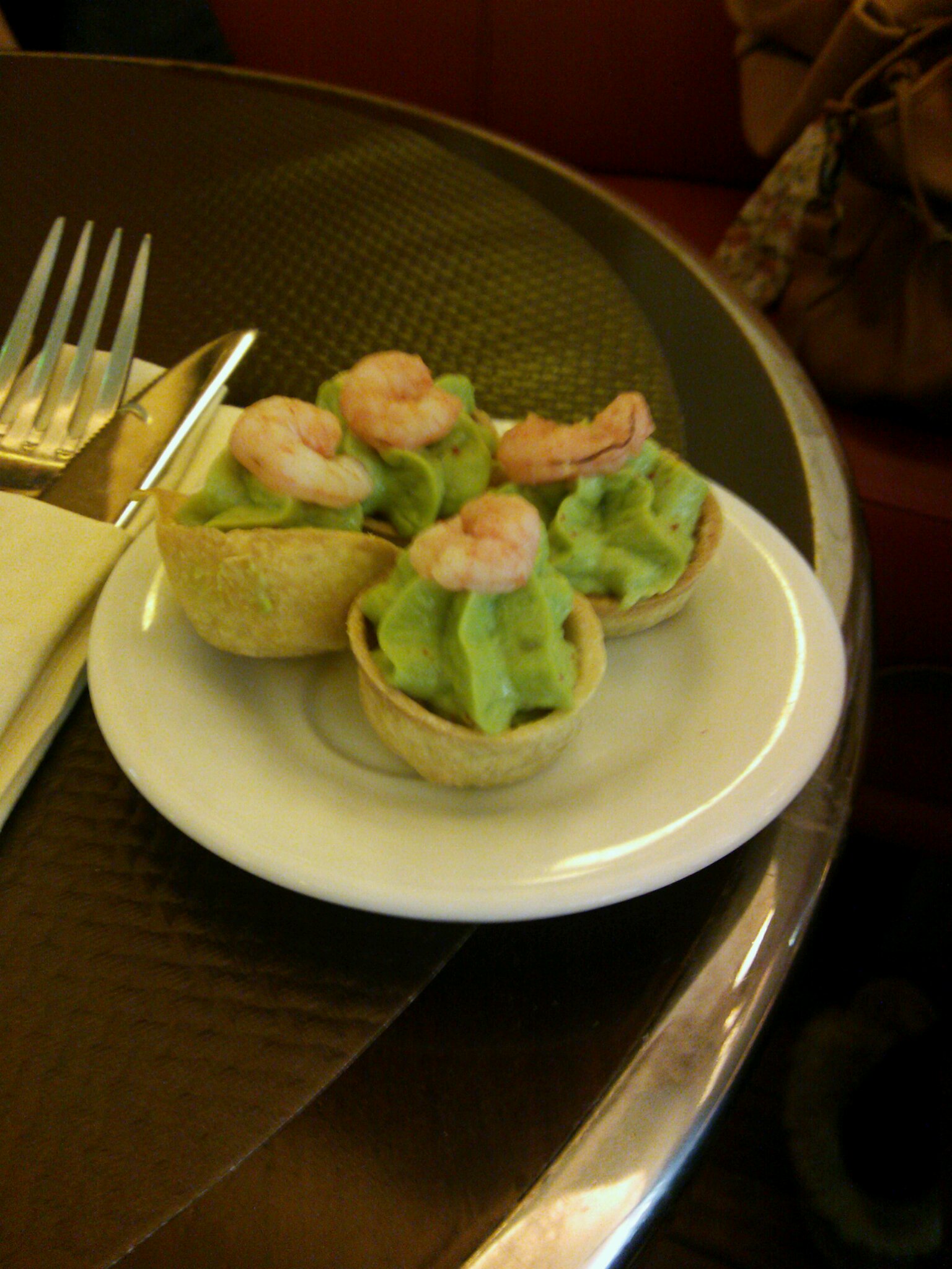 シャンゼリゼ通りで入ったカフェで飲み物を頼んだら出てきたカナッペ。見た目がかわいい。
