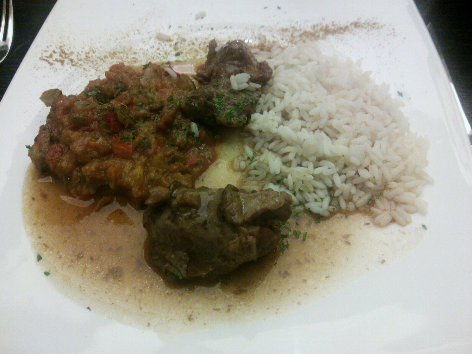 あぁ、そうそう。この豚の煮込み料理の付け合わせに米があるのですが、日本米ではなくて、タイ米なんですよね。