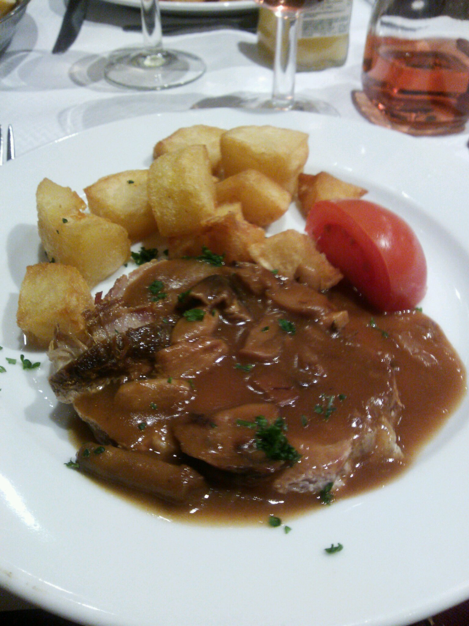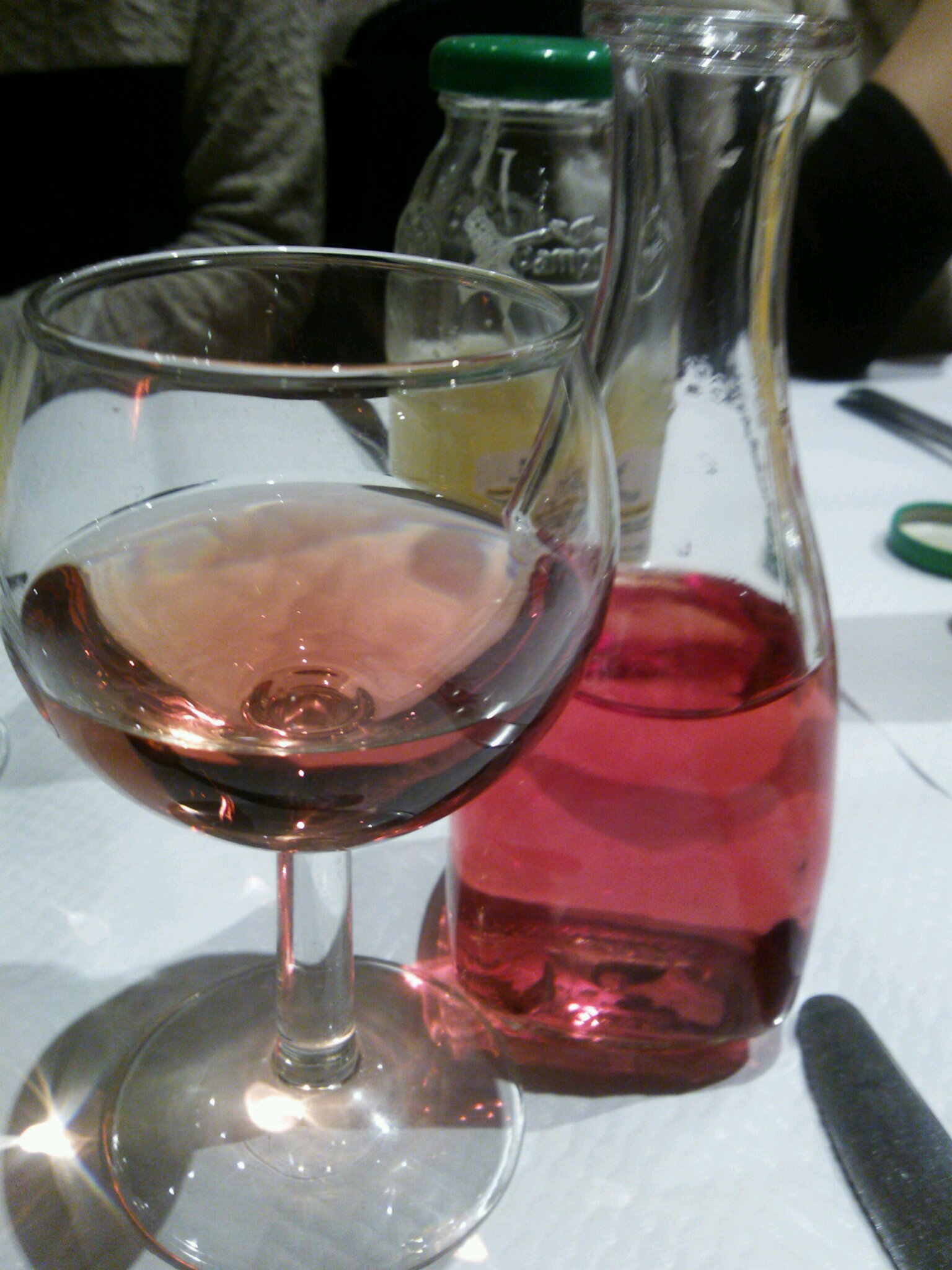 ワインのロゼ。ワインとソフトドリンクの値段があまり変わらないという驚愕の地フランス。(5~7ユーロぐらい。フランスは飲食代がちょっと高めです。)