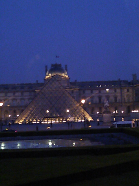ナイトクルーズのバスの中から撮ったルーブル美術館です。このピラミッド、有名ですよね。