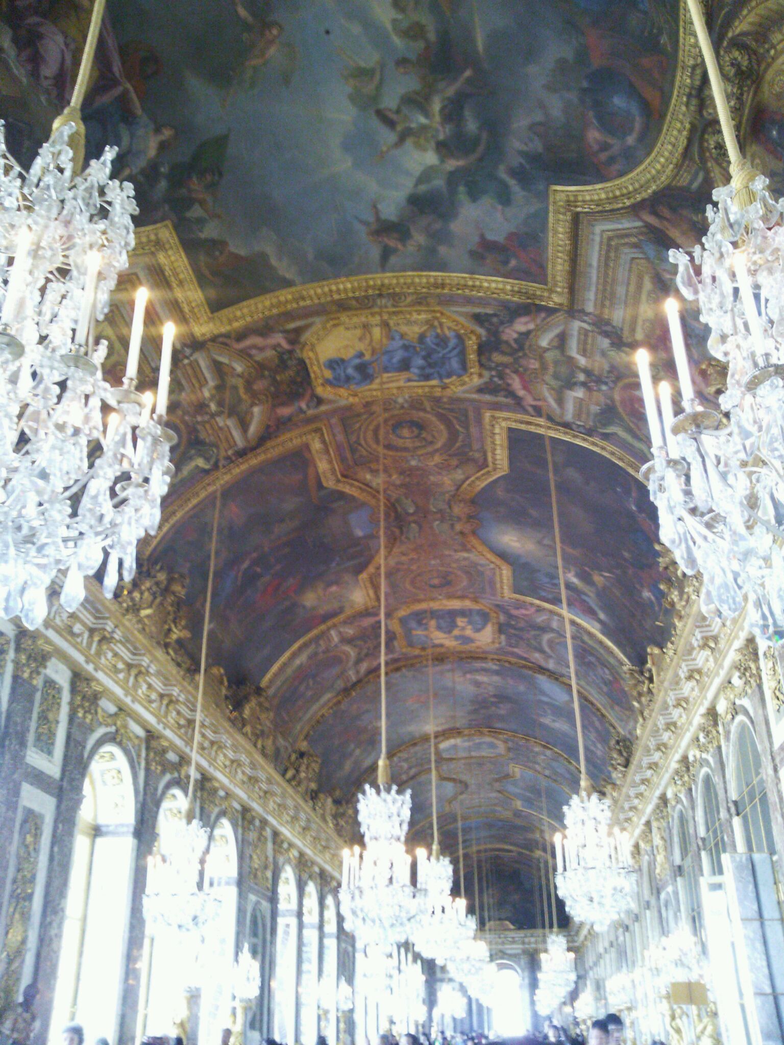 鏡の間です。シャンデリアに天井の絵、見入っちゃいますね。